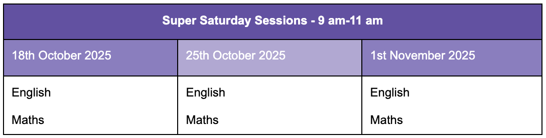 October half term revision sessions